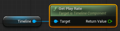 Get Play Rate — возвращает текущую скорость воспроизведения Timeline как значение типа float. Полезно для динамического изменения скорости анимации или проверки, с какой скоростью проигрывается Timeline.