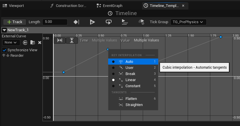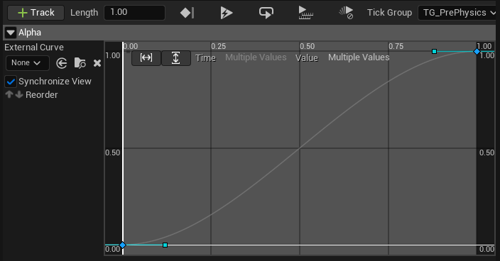 Также поддерживается использование внешних кривых (External Curves) — это отдельные ассеты Curve, которые можно подключить к Timeline для повторного использования в разных местах проекта.