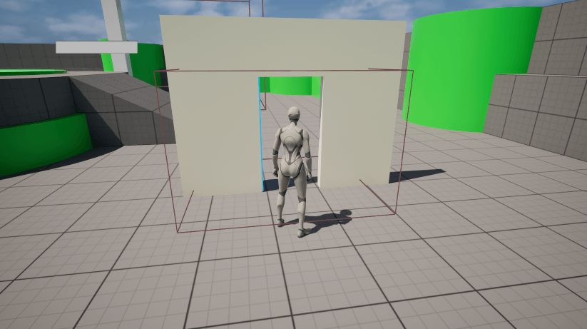 В итоге, как только игрок пересекается с коллизией взаимодействия двери, дверь открывается (плавно сдвигается влево).