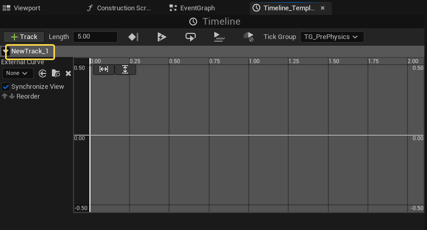 После выбора типа дорожки она добавляется в редактор, где можно сразу задать ей имя. Это имя будет отображаться и на самом узле Timeline в Blueprint в выходном пине для получения текущего значения дорожки.