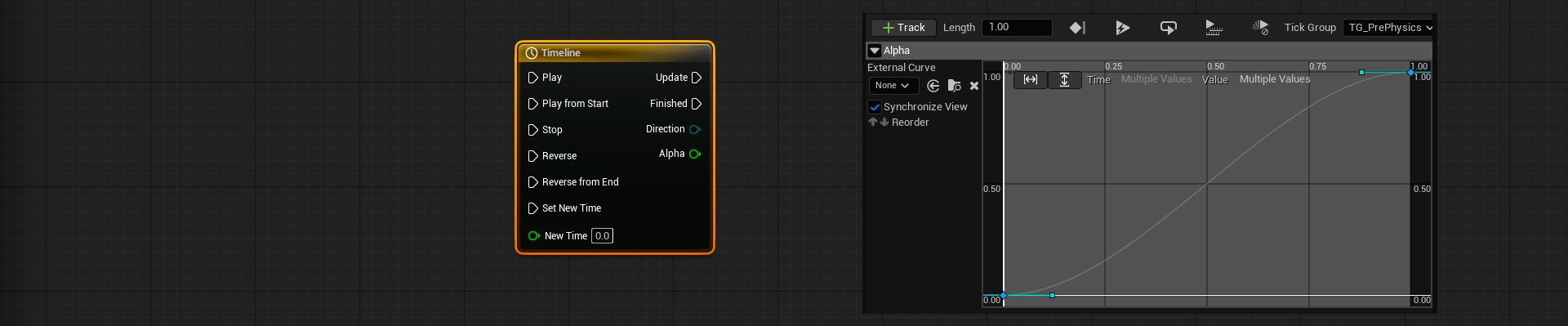 - Ограничение использования внутри функций Blueprint — Timeline нельзя использовать внутри Blueprint-функций, так как он обладает внутренним состоянием и асинхронным воспроизведением, что несовместимо с синхронной природой функций. Используется он в Event Graph, который поддерживает асинхронные узлы с состоянием.